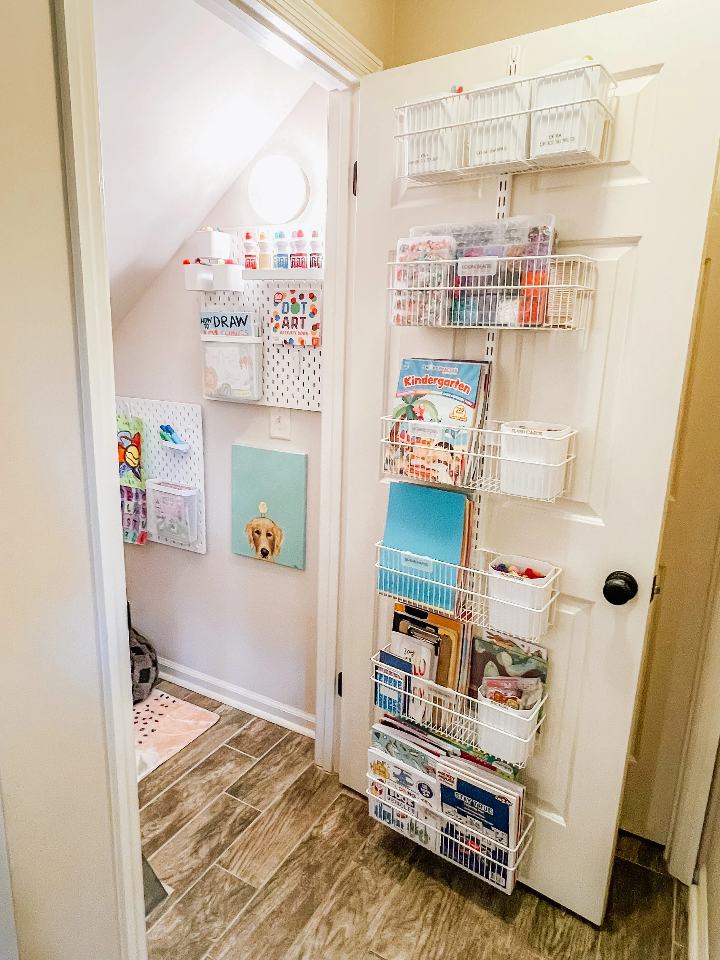 Over-the-Door Organizers: Make use of vertical space by hanging an over-the-door shoe organizer for craft supplies. This is great for holding a variety of items like scissors, yarn, and paints, while keeping them easily accessible.