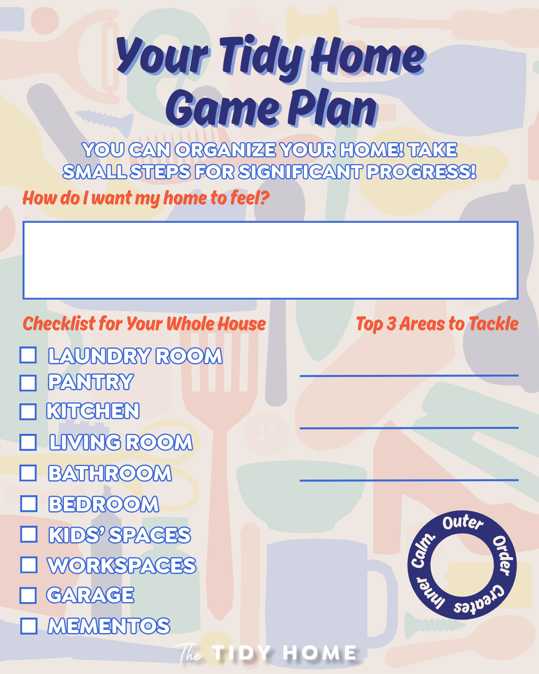 No planning, no pressure. Just small tidy wins that add up to a calmer, more functional home. We also left some blank spots for you to fill out on your own!