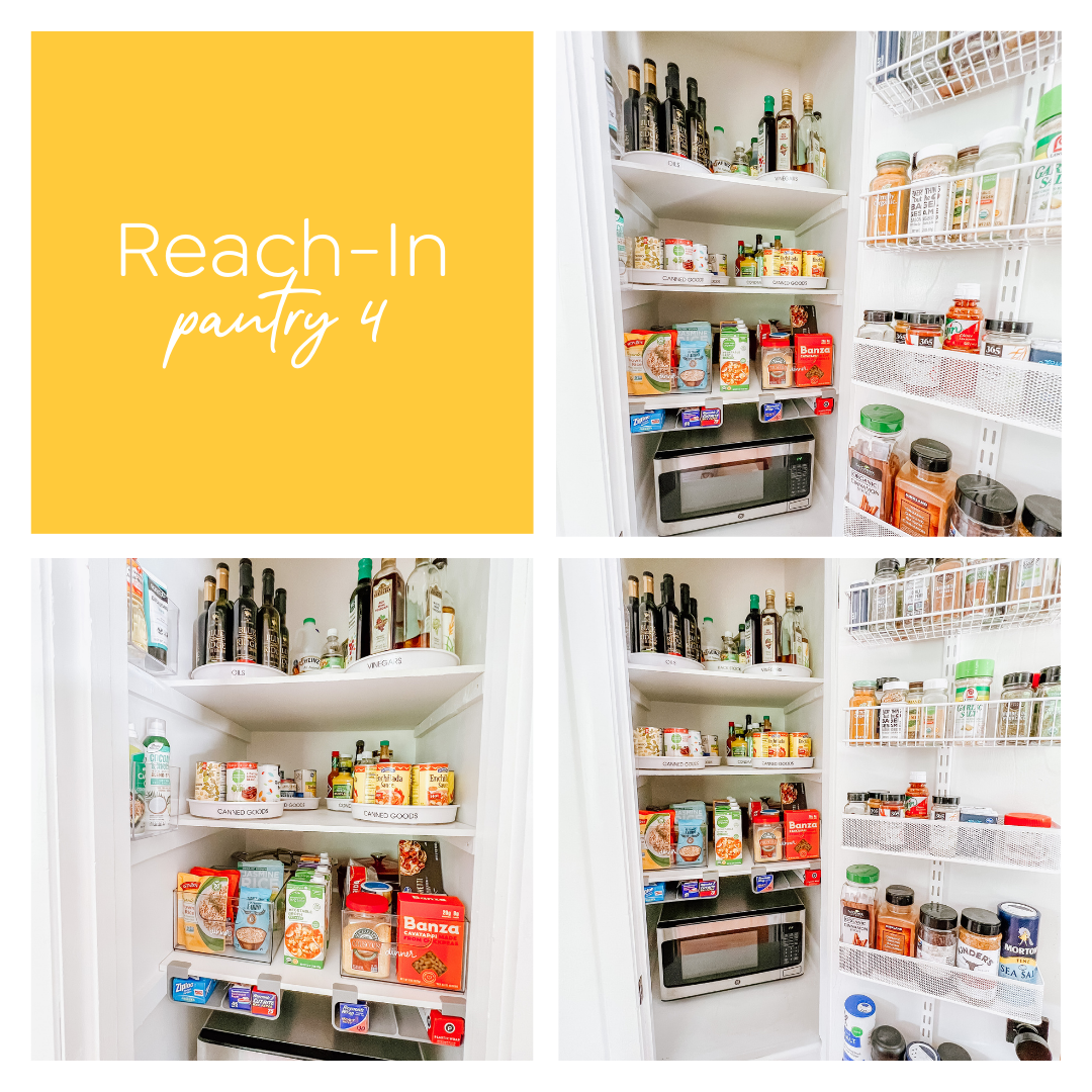 The #1 key to making a small pantry or cupboard work? Use as many turntables as you can. They keep items from disappearing into the back and make everything easier to grab (no digging required!).